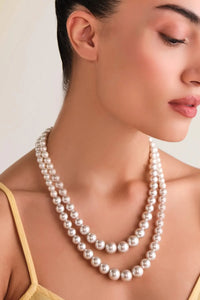 Featuring the Double Graded Ombre Necklace by Anaash, this elegant piece is crafted from manufactured pearls in a beautiful white and pale gradient. Measuring 20 inches in length, it is finished with a lobster clasp for secure and graceful wear.