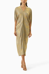 Drape cowl kaftan. All-over foil print in soft flowing knitted fabric. V-neck detail. Relaxed fit.