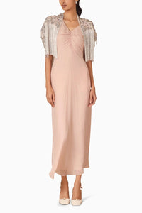 Composition- Tulle and Chiffon Color- Dusky Pink Details- Hand Embroidery Fit- Semi Body Fit Components- 2 Product Code- SVESHRIAW24CR14