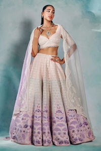 Featuring a pure dupion silk lehenga paired with a fully embroidered blouse and a silk organza scalloped dupatta, crafted to perfection for a timeless and elegant look.