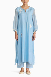Introducing the Handwoven Chanderi Powder Blue Relaxed Fit Kurta Set, a serene blend of elegance and comfort. The kurta is adorned with exquisite resham embroidery, beautifully showcased on both the kurta and the coordinating dupatta, adding a touch of intricate craftsmanship. This set is paired with soft cotton trousers for a comfortable fit and an organza color block dupatta that enhances the overall look with a modern twist. Perfect for both casual and special occasions, this ensemble offers a sophisticated yet relaxed style.