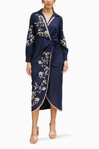 This wrap dress in a garden inspired embroidery is a lovely style. The wrap tie gives you a flattering hourglass shape and an effortless silhouette. Match is with bold accessories for an event ready look.