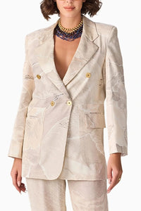 Featuring Dull Scratch Flower Ezra Blazer by Saaksha & Kinni's Nirah Collection. This sophisticated blazer showcases an abstract floral print with patch pocket detailing, offering a perfect balance of structure and contemporary elegance.