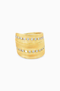 The Duo Band Ring by Miapia is a modern masterpiece of understated luxury. Designed with dual bands in vermeil gold over sterling silver, it features two shimmering rows of moissanite diamonds, creating a delicate yet bold statement. The subtle texture of the gold contrasts beautifully with the sparkle of the stones, making it an ideal piece for both casual and formal occasions. As part of Miapia’s demi-fine jewellery collection, this ring is perfect for stacking or wearing alone as a timeless signature accessory.