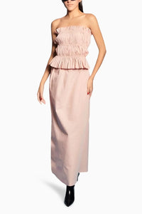 Featuring Dusty Pink Crop Top With Skirt by Alan by Vani from Sky is High Collection. This beautiful dusty pink crop top in poplin comes with smocking details. Paired up with a monotone skirt boasting a stylish slit design.