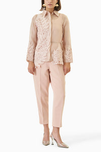 Featuring the Dusty Pink Leaf Applique Coord Set meticulously crafted from delicate organza. Its enchanting pink color and design exude timeless elegance, making it perfect for special occasions. Elevate your style gracefully.