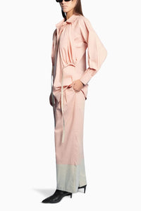 Featuring Dusty Pink Shirt With Pants by Alan by Vani from Sky is High Collection. Tailored in Poplin, this beautiful shirt is attached to a pleated crop top and comes with a color block pants.