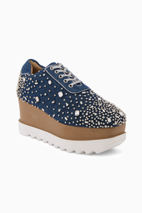 Crafted in denim and embellished with opulent white stones and silver zari detailing, our Dynasty wedge sneakers are loved by generations of couture queens. A beach wedding or a tropical honeymoon—they’re made for both the big day and days of adventure and relaxation that follow. The signature silhouette of these shoes adds style to your step and a lot of comfort to celebrations of all sizes. You’ll come for the wedge and stay for the sneaker. The best of both worlds, like never before. The artisans of Anaar take 15 hours to carefully construct this pair.