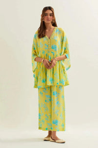 Featuring Ebla Short Kaftan Co-ord Set by Label Earthen from Loom Florist Collection. The short kaftan co-ord set blends comfort and style effortlessly, making it ideal for elevating your everyday dressing with a chic and relaxed look.