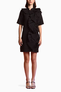 This black number is cut and crafted in luxurious fabric. The pleated frill on one side add glamor and stand out in the dress. The length and fit are perfect for all body types. This shirt dress is a statement piece that is sure to turn heads.