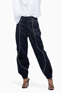 The Echo black gorge pant is a relaxed outdoor pant which is cut in two layers. The white piping detail moves very well and adds a element that cannot be missed. It adds a zig zag effect while the wearer moves. It is definitely a one of its kind statement piece that can be worn easily for various occasion. It is trendy stylish comfortable and wearable. You know you cant miss this one.
