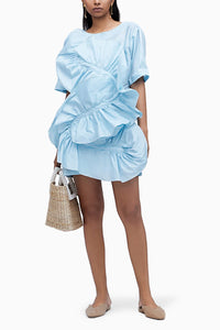 The blue eroded taffeta dress is a one of its kind dress. If you are experimental, chic and edgy this is the dress for you. Besides being a statement piece it is also comfortable and light. The fall and fit is straight and the front frill makes it just the right piece for any and every body type. The contrast thread work detail adds to the overall look and appeal of this dress. Get out there and make a statement no one can ignore. This eroded taffeta dress is a essential party dress that is just the right length and is super chic.