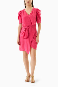 Cut in luxurious satin this dress has a beautiful fall this which adds to the elegance and beauty to the garment. This dress details with side zip exposure and a V neckline. The colour of this outfit compliments the wearer and the overall look of the dress is formal yet easy. Style this with a pair of glamorous earrings and heels you are all set to party.