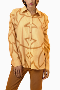 Echo Sketch Shirt, crafted in Chanderi silk, renowned for its lightweight feel and subtle sheen. Experience the artistry of subtle contrast thread work that graces the fabric, adding a delicate and intricate touch to the overall design. The mild contrasts enhance the sophistication of the beige silk, making it a standout piece. Our Echo Sketch shirt is a testament to quality craftsmanship.