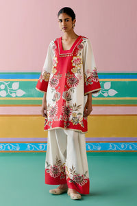 A graceful blend of charm and sophistication, the Red Square Neck Kurta Set is crafted in airy Chanderi with intricate lace detailing on the neckline, sleeves, and hem. Finished with playful tassels and paired with fully elasticated farsi-style pants, it offers effortless elegance for daytime festivities and evening soirees.