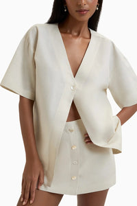 The Capri top offers a relaxed fit with a V-neckline and Shell button closure. Tailored with luxurious Linen fabric, this elevated basic pairs perfectly with the Capri Linen skorts or pants for a day out in the city or packing for a holiday.