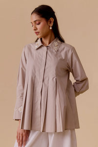 An all time Bunka favourite makes a comeback this season! This well structured shirt features the season's signature embroidery details across the collar. Understated yet makes a statement.