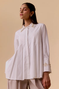 An all time Bunka favourite makes a comeback this season! This well structured shirt features the season's signature embroidery details across the collar. Understated yet makes a statement.