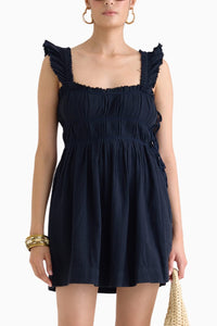 Featuring the Edda Short Dress by House Of Exotique is a chic piece. With ruffle detailing on the shoulders and an elasticated, side drawstring fastening, it features charming button detailing. Crafted from poplin fabric in timeless black, it's a versatile and stylish addition to any wardrobe.