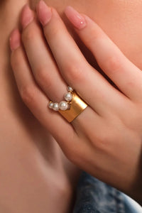 Featuring the Edge Ring by Anaash, this sleek and minimalist ring is crafted from hypoallergenic brass with 22k gold plating. Finished in white, it offers a smooth band design with subtle pearl accents, adjustable for a perfect fit and everyday elegance.