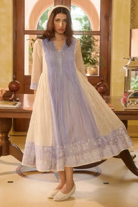 Woven striped silk organza & handwoven chanderi pintucked kurta with a slip. embellished with hand block printed and hand done beading work. Comes with a 100% cotton slip.