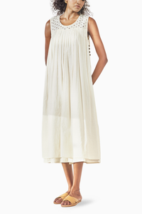 Featuring an ivory white dress with front and back over lay from the bust line and has side button detailing.