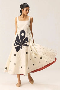 Featuring an ode to soft summer nights, this effortless sleeveless dress is crafted in pure, breathable mul. Designed with a flattering square neckline and accented by a contrasting maroon piping at the hem, it offers both comfort and charm. Fully lined for ease, it includes side pockets and a discreet side zipper for a seamless fit.