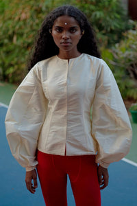 Crafted in structured poly taffeta, the Eira Top is designed to make a statement. Its sculpted fit and voluminous sleeves add drama, while the clean front closure keeps it sleek and modern. It’s perfect for both day and evening edits. Style it with tailored trousers or with the Phoenix skirt for an elevated, fashion-forward look.