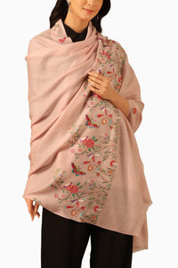 Presenting a one-of-a-kind Peach pure pashmina shawl. Chann, is adorned with a graceful butterfly pattern. This shawl is the symbol of transformation, hope, and faith which makes this Shawl the best gift for your loved ones.