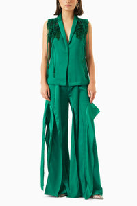 Make a bold statement with our Electric Green Floral Appliqué Pantsuit. This vibrant ensemble features intricate floral appliqués that add a touch of whimsy and sophistication. Designed for a flattering fit, the tailored silhouette exudes confidence, making it perfect for both formal events and chic gatherings.