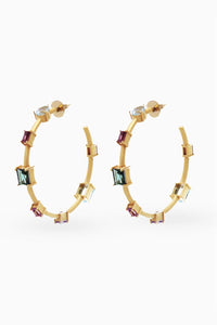 A prismatic and charismatic set of hoops . The spectrum of colors embodied by the Eleonora hoops is all at once, harmonious and festive. It? like having your rainbow and wearing it too!