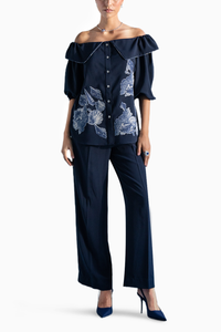Introducing the Elina Off-Shoulder Appliqué Work Coord Set – a chic ensemble that seamlessly blends style and sophistication. This coord set is designed with meticulous attention to detail, showcasing an off-shoulder top adorned with exquisite cherry-themed appliqué work. The crepe fabric adds a touch of elegance, making it a perfect choice for both casual and semi-formal occasions.