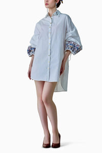Featuring Elsa Oversized Batwing Shirt with Embroidered Smocked Sleeves by Saaksha & Kinni, this stylish shirt features oversized batwing sleeves with a collared design. Intricate mirror and thread hand embroidery adorn the smocked sleeves, complete with tie-ups for an elegant, modern touch.
