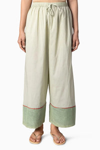 Elsa Pajama crafted in serene sea green heavy voile, is adored with intricate hand jali and features timeless stitch detailing on a separate bottom panel.
