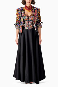 Color: Jacket : Black, Corset: Multi, Skirt : Black