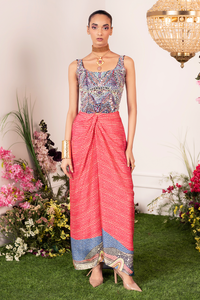 Introducing our stunning embellished corset paired with a vibrant coral skirt, a perfect combination of modern elegance and playful flair. The corset features intricate detailing that accentuates your silhouette, while the coral skirt flows beautifully, adding a pop of color to your look. Ideal for parties or special occasions, this ensemble is sure to turn heads.