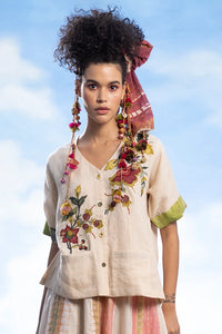 Elevate your wardrobe with this V-Neck Embroidered Front-Open Jacket Shirt, crafted from soft linen in Ecru and Mehroon. Featuring intricate embroidery, a comfortable lining, and practical pockets, this versatile piece combines style and functionality for a chic, modern look