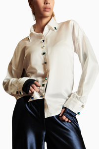 This ethereal ensemble features a white satin embroidered Shirt paired flawlessly with Wide Pants. The delicate embroidery enhances sophistication, while the wide-leg pants add a touch of modernity, creating a harmonious blend of timeless grace and contemporary chic.