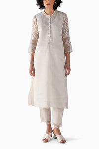 Introducing an ethereal Tunic ensemble, crafted from stripe organza double layer tunic with bara embroidery sleeve detail, lending it a delicate and ethereal quality. The coordinating organza pant complements the tunic perfectly. Crafted from the same fabric, it ensures a harmonious look when worn together.