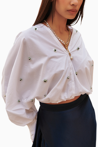 Introducing our Embroidered V-Neck Crop Top, a flawless fusion of trendiness and elegance. Delicately crafted with intricate detailing, this top exudes sophistication in every stitch. The V-neck design beautifully accentuates your neckline, while the cropped length highlights your silhouette with a modern flair.