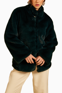 Elevate your winter style with our luxurious green fur jacket. Featuring a chic high neck standing collar, front opening secured with hooks and buttons, and adorned with silk lining, this jacket is perfect for braving extreme cold days in both warmth and style.