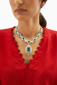 Sophisticated and glamorous, this jewel coils around the neck striking with the precious beauty in this beautifully crafted necklace in white & green stones.