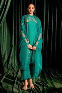 Emerald Green Floral Applique Kurta with Cutwork Pant