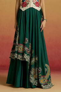 Emerald Green Paisley Embroidered Layered Amaryllis Lehenga