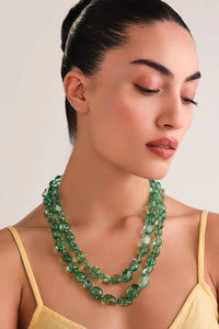 Featuring the Emerald Green Tumbles necklace by Anaash, this exquisite piece is made from onyx with a metal base. It showcases a rich emerald green color, features an adjustable length, and is secured with a lobster clasp closure for convenience and style.