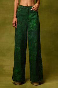 Crafted in textured hand-drawn deep green print, these straight trousers exude understated sophistication. Their relaxed silhouette makes them perfect for polished daywear or refined evening occasions.