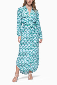 This long shirt dress features a waist-tie belt, offering a perfect blend of chic and casual style.