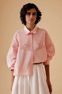Our Emma shirt can be smartly styled for a day at the office or casually paired with our Ann skirt for a more relaxed, holiday fit. Features floral embroidery that is accentuated with hand-beaded pearls and sequins.