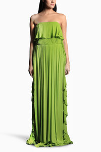Featuring the Off-Shoulder Gown with Frill Detail by Swatee Singh in a lush Green hue. Crafted from exquisite georgette fabric, this gown radiates elegance and charm, offering a stylish and enchanting look for any special occasion.