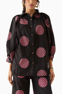 The Erno shirt features an extended raglan armhole and wide sleeves, finished with adjustable drawstring details for a customizable fit. Crafted in a playful Spot print, this shirt combines relaxed comfort with modern style.